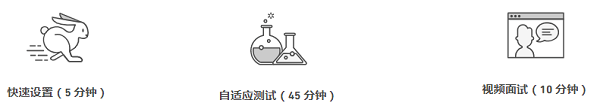 考试主要包括自适应测试(45分钟)和视频面试(10分钟)两部分。自适应测试包含评估听、说、读、写技能的分级测试环节,视频面试包含不评级的开放式问题(回答将被记录)。
