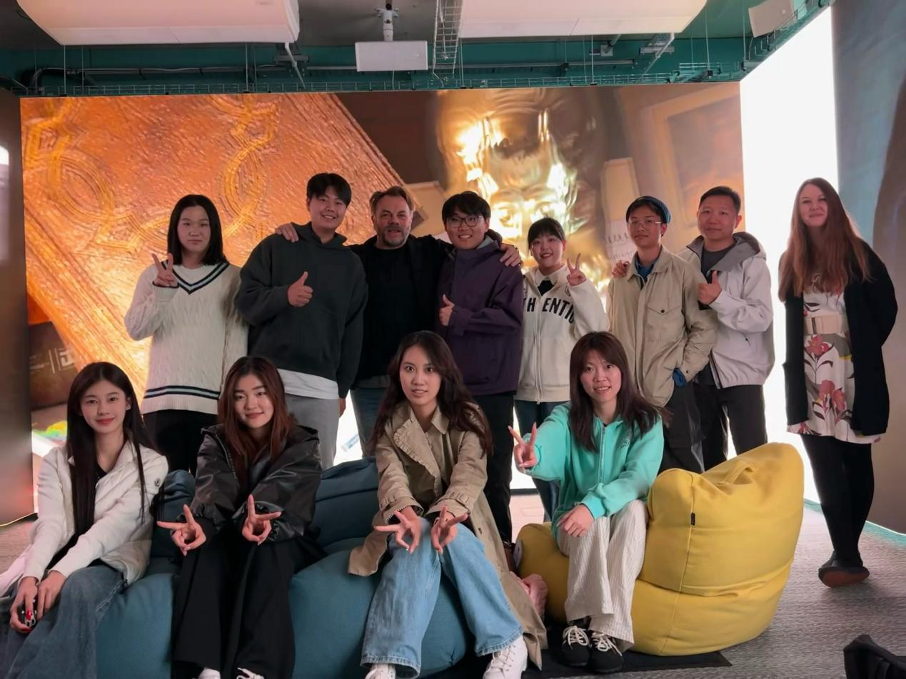 出访团参加由Timi与Kylie老师主导的数字交互沉浸式体验课程。课程以“设计师作为故事讲述者”为主题,鼓励员工跳脱固有思维,融合东西方艺术元素,通过三面多媒体屏幕构建叙事逻辑,完成挑战任务。这一创新教学模式激发了员工对信息整合与故事表达的深度思考。