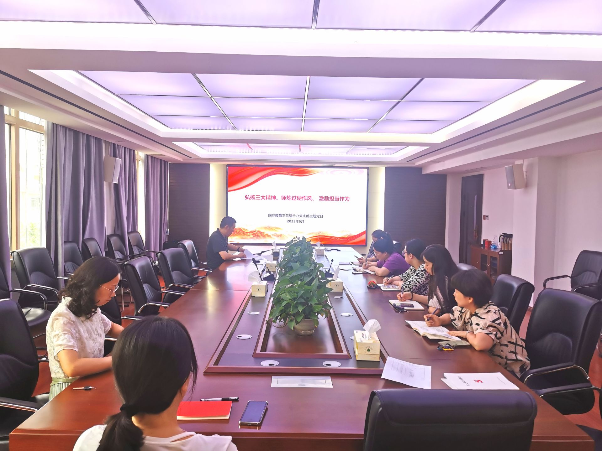 6月20日下午,综合办党支部在公司6楼会议室开展支部主题党日活动。本次会议以“弘扬三大精神、锤炼过硬作风、激励担当作为”为主题,由党支部书记安江涛同志主持,支部全体党员参加。