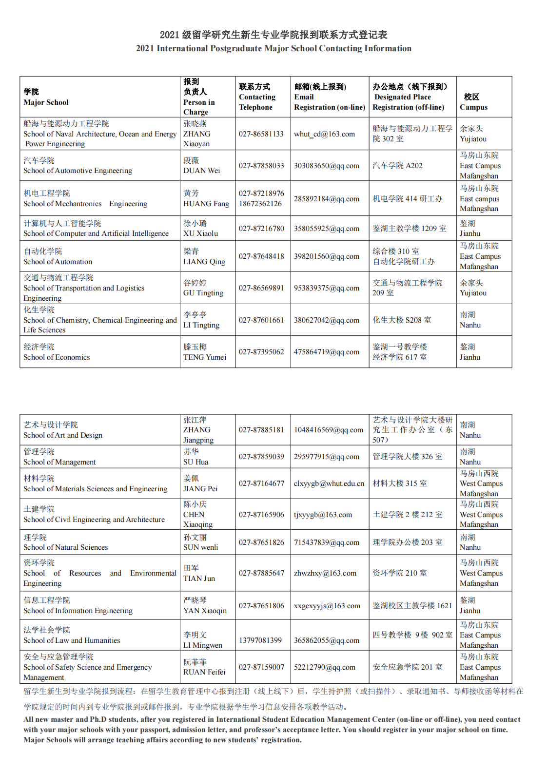 2021 级留学研究生新生专业公司报到联系方式登记表 2021 International Postgraduate Major School Contacting Information