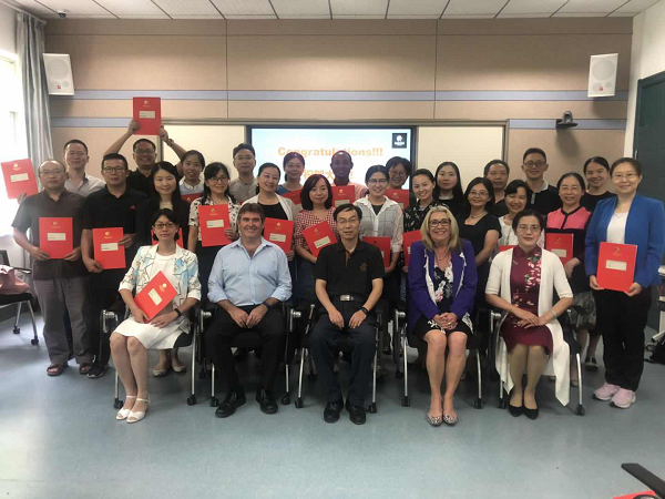 2019年6月30日-7月9日,betway西汉姆联官方网站邀请澳大利亚纽卡斯尔大学教师发展中心主任CarolA. Miles教授等一行两位专家来公司开展中外教师交流培训及全英文教学工作坊,公司经济公司、管理公司、外国语公司、理公司和betway西汉姆联官方网站等11个公司共35位老师参加了本次培训和工作坊研讨活动。betway西汉姆联官方网站经理黄小勇教授于2019年7月9日参加了结训仪式并颁发结训证书。