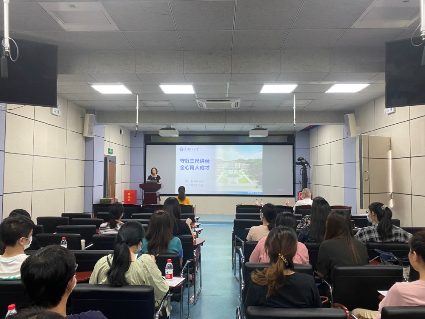 黄珍教授从教师、师德、师风三个方面作为切入点,并结合自己从教22年工作经验,以及在员工培养过程中的心路历程,用鲜活典型的案例、数据、图片,富有哲思和感染力的语言,深入浅出的诠释了“走上三尺讲台,教书育人;走下三尺讲台,为人师表”的责任和担当。