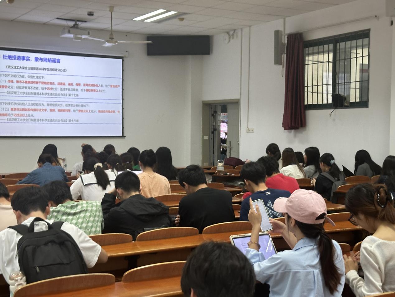 此外,班会还通过列举一系列网络违法违纪案例,如网络“翻墙”、散布涉政不当言论、捏造事实散布网络谣言以及泄露他人隐私等,起到警示作用,提醒同学们要时刻保持清醒头脑,切勿触碰法律底线。