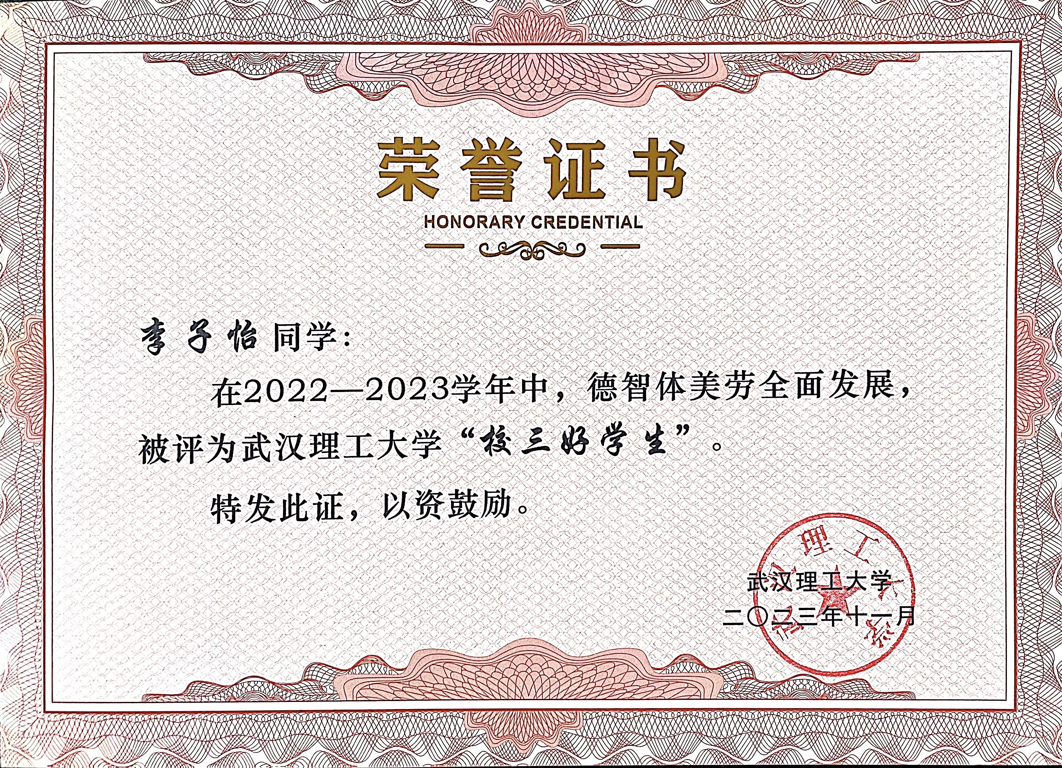 “玉不琢,不成器,人不学,不知义。”在学业上,我脚踏实地,潜心钻研,致力于本专业知识的学习与探索。同时,我也深知“纸上得来终觉浅,绝知此事要躬行”的道理,注重培养自己的实践能力和全方位思考的能力。我将所学知识与实际相结合,与同学们团结协作,共同面对挑战,共同成长。三年来,我以优异的成绩和出色的表现,赢得了“校三好员工”“校优秀员工干部”等荣誉称号,并在班级中发挥着模范带头作用。