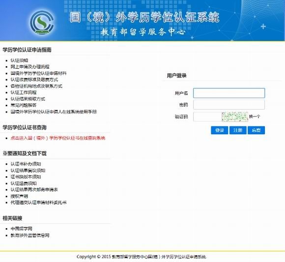 1、在教育部留学服务中心国(境)外学历学位认证系统注册(http://renzheng.cscse.edu.cn/Login.aspx)网上注册信息(验证点选定湖北省人才市场),网上注册提交,在线支付认证费(385元)后再办理材料递交手续。认证咨询电话02787257917。注册界面如下: