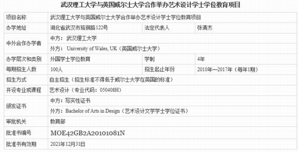 A.中外合作办学项目名称:betway西汉姆联官方网站与威尔士大学合作举办艺术设计专业学士学位教育项目