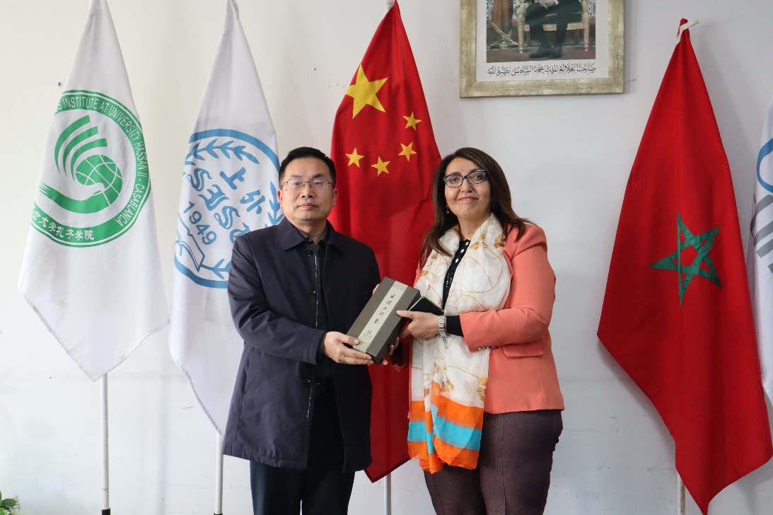 此外,代表团于12月8日访问哈桑二世大学孔子公司,在中方经理程洪金和外方经理法德玛·艾特·穆斯陪同下参观了孔院文化展室、多媒体教室、教师工作室等,双方就各自情况及特色项目进行了深入交流和工作分享,希望在未来开展相关项目的合作与交流。