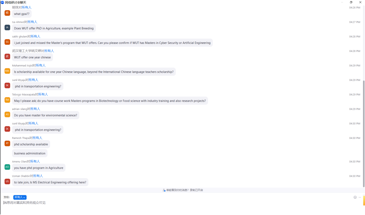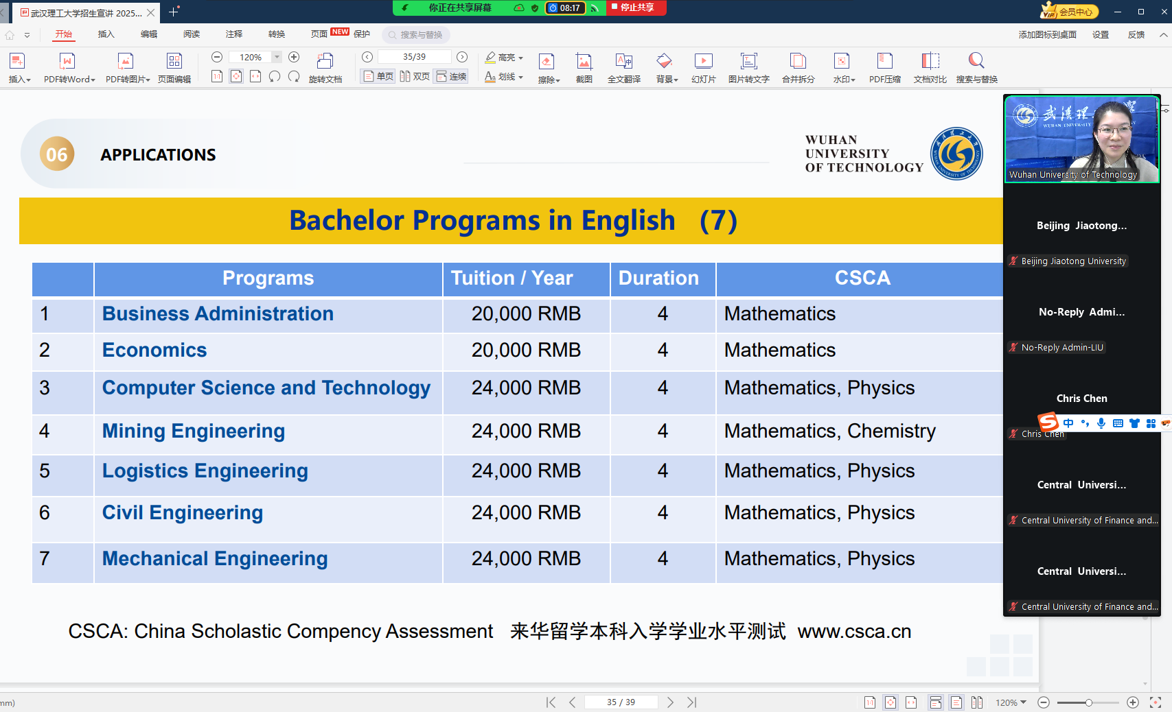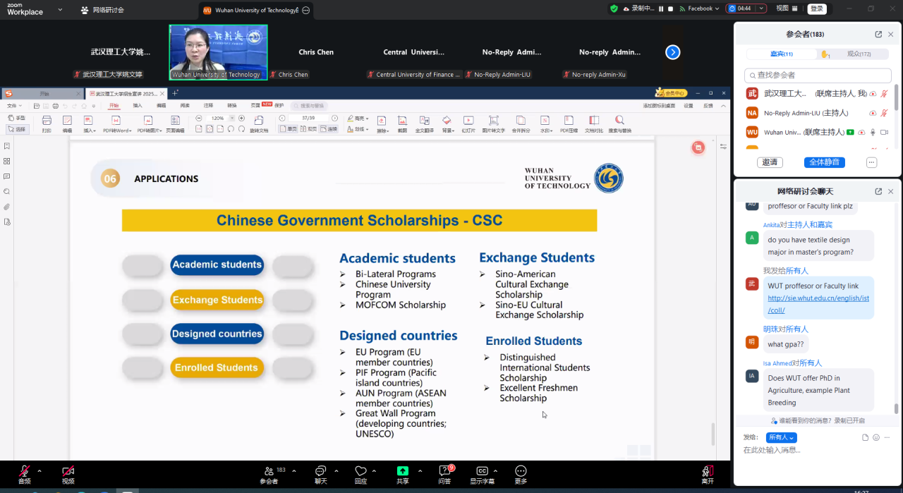 为落实公司“4310”国际化行动计划,促进“留学武理”品牌建设及宣传,betway西汉姆联官方网站职工招生与培养中心参加了中国教育国际交流协会组织的2025年度大型线上直播与推介活动,于12月18日下午通过Zoom直播平台以线上宣讲方式面向国际员工介绍公司办学历史、优势专业、特色课程和2026年的招生政策,并与直播间的意向申请人进行答疑互动。