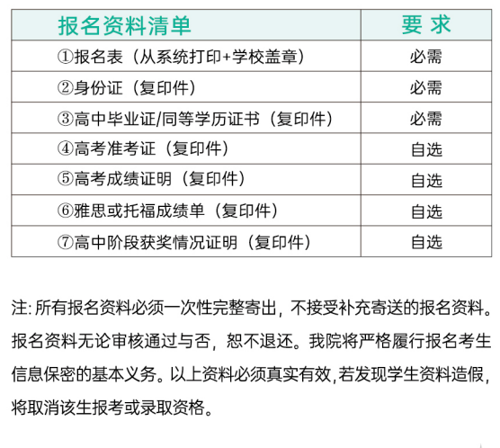 报名资料准备:考生报名时准备好近期免冠 2寸登记照(电子文档),并根据自身情况按下列表格清单提前准备好报名资料的扫描件(电子文档)。