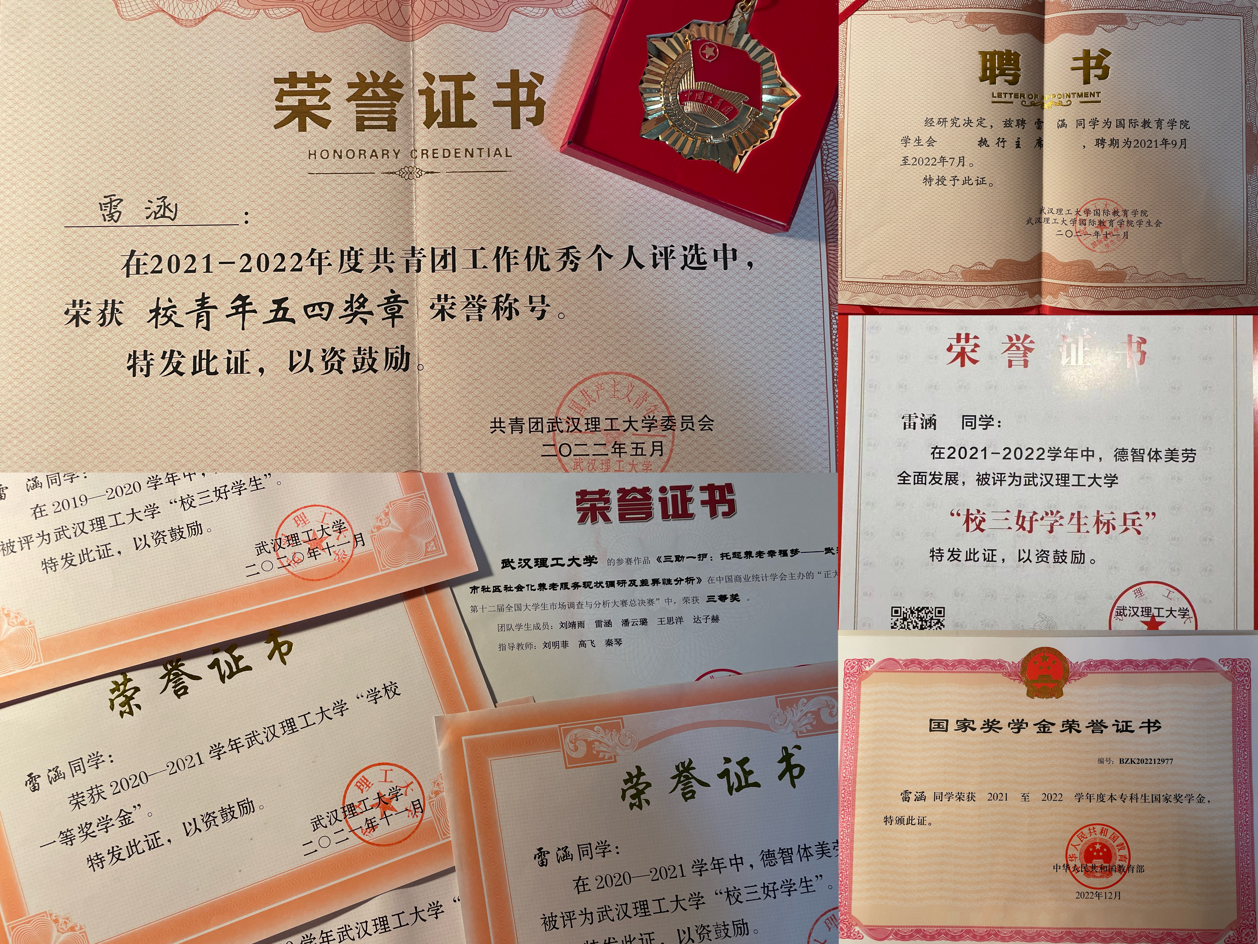 在参与市调赛过程中,雷涵第一次在实践中接触到市场营销这门管理类专业,“我在比赛当中学到了很多管理学的理论模型与统计学方法,这给予了我很多启发”,这也为雷涵未来的选择道路买下了一粒种子。参与申报老员工创新创业训练计划期间,雷涵对于科研产出进行商业化分析,学以致用,无论是国创项目还是竞赛均取得了不错的成绩,所有的付出都迎来了收获。