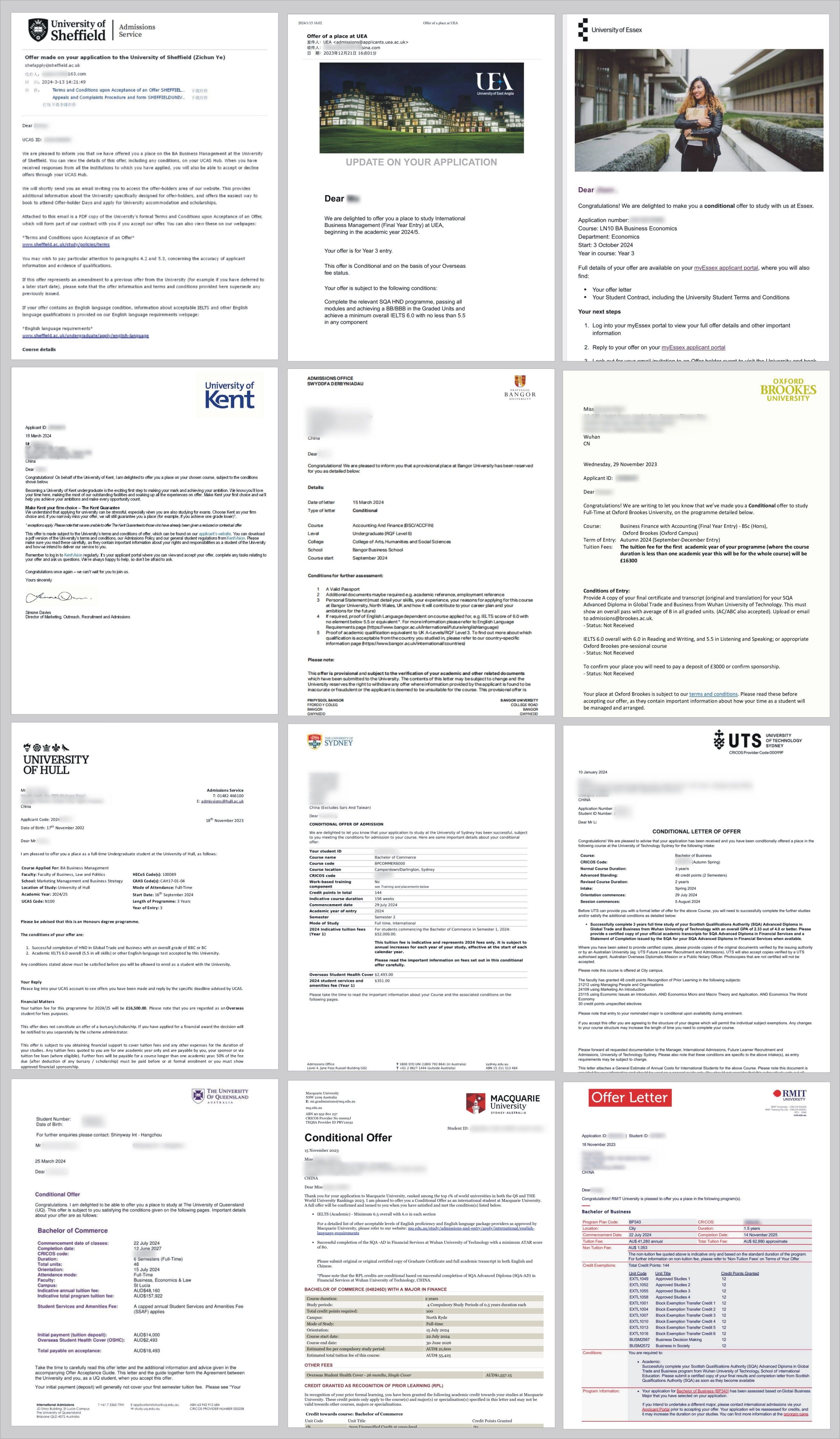 雨生百谷,万物春生,在这美丽的时节里,betway西汉姆联官方网站SQA项目2024届毕业生也迎来了收获季。在公司的培养和学子们坚持不懈的努力下,截至目前有超过98%的员工喜获境外高校录取通知书!大多数毕业生收到泰晤士高等教育世界大学排名前500高校的录取通知书,包含英国谢菲尔德大学、英国东安格利亚大学、英国埃塞克斯大学、英国肯特大学、澳大利亚悉尼大学、澳大利亚昆士兰大学、澳大利亚麦考瑞大学、澳大利亚皇家墨尔本理工大学等境外知名大学。