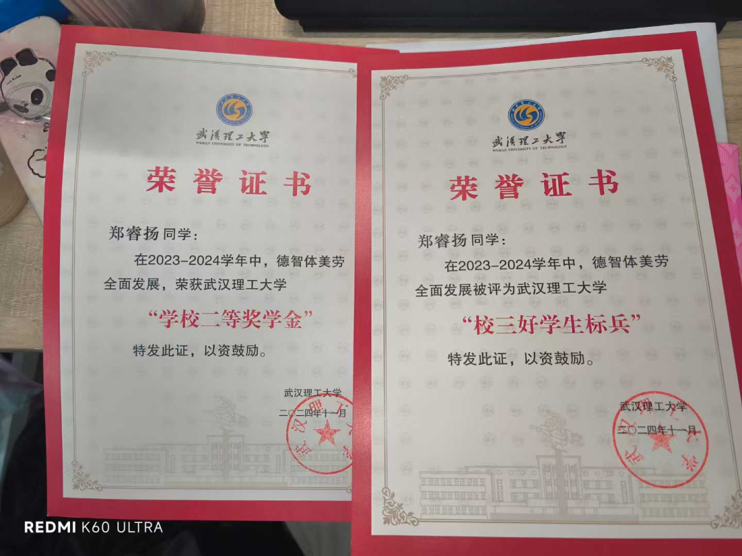 大学期间,我积极探索多样的笔记整理和归纳方法,极大地提高了学习效率。在日常学习中,我不仅注重课堂知识的消化,学习过程中,武理的老师总是认真负责地对同学们进行一对一反馈,这对我尤为重要,因为无论是论文写作的框架修改,还是知识点理解的深入拓展,老师们都会耐心地逐条讲解、逐点提醒。及时而细致的指导让我少走弯路,也让我不断提升思考的深度。课后,我也习惯把课堂内容和反馈及时整理成电子笔记,用批注和标记的方式强化理解。老师的认真负责与我的持续努力相辅相成,让学习过程既高效又充实。日常生活中,辅导员和学工老师们的严管厚爱与细致关心,让我们的求学之路没有后顾之忧;老师们的鼓励,也让我更有勇气去追逐自己的梦想。