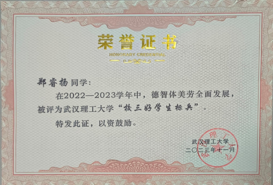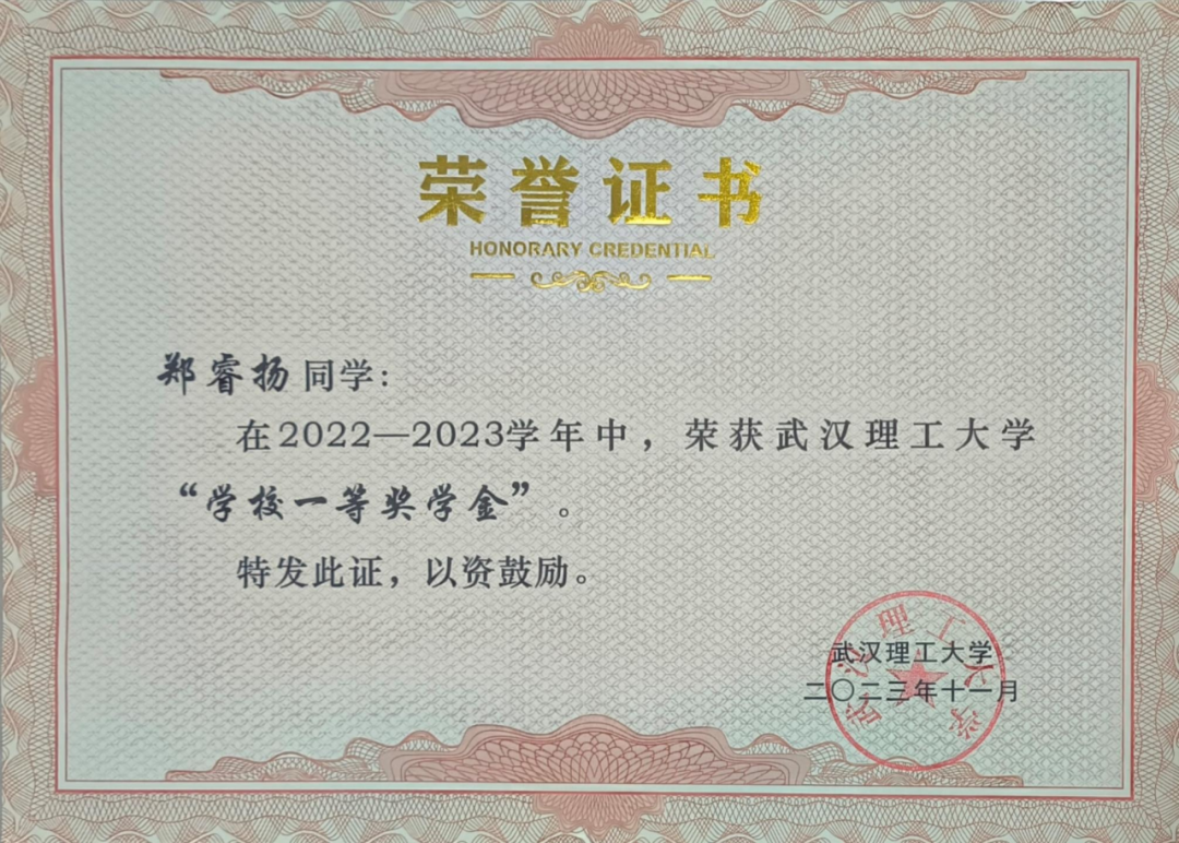 2022-2023学年度专业绩点和综测位列年级第一,2023-2024学年度专业绩点和综测位列班级第一;
