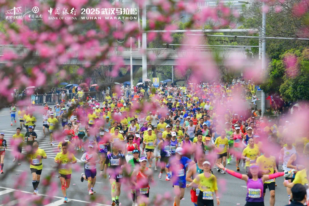 3月23日,2025武汉马拉松鸣枪开跑,吸引全球4万名选手齐聚江城,逐梦赛道。