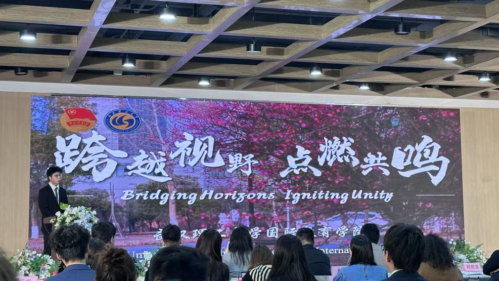 在4月12日的主论坛上,各院校代表围绕合作办学课程设置与课程创新、员工组织与员工活动、学术科研与团队力量、升学路径与就业支持等主题展开演讲,分享各自公司的亮点与特色。公司金融gj2302班的朱子百嘉同学在以“员工组织与员工活动”为主题,作出了题为《跨越视野、点燃共鸣》的汇报演讲。他表示,betway西汉姆联官方网站始终践行“明德笃行,守正创新”的院训,秉持“we believe in building bridges, not walls.(中外合作办学建造的是桥梁,而不是墙)”的理念,在中外合作办学的道路上不断创新发展,着力培养中华优秀传统文化的传播者,新时代中国故事的讲述者,不负韶华、砥砺前行的奋斗者。汇报获得了主办方老师和在场嘉宾的高度认可与赞扬。