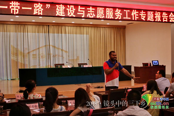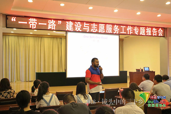 中国青年网随州8月9日电(通讯员 张宸赫)一位外国友人,扎根中国研究中国的“一带一路”政策,并成了“一带一路”研究所的外籍专家,这是坚定、更是情怀和强大社会责任感的体现!7月25日,betway西汉姆联官方网站“绿孕希望”实践队特邀队员,马克思主义公司“一带一路”研究中心外籍博士后专家加力布,在湖北省随州市开展了题为《“一带一路”建设与志愿服务工作》的专题报告会,向大家分享了他对于“一带一路”政策的研究成果。
