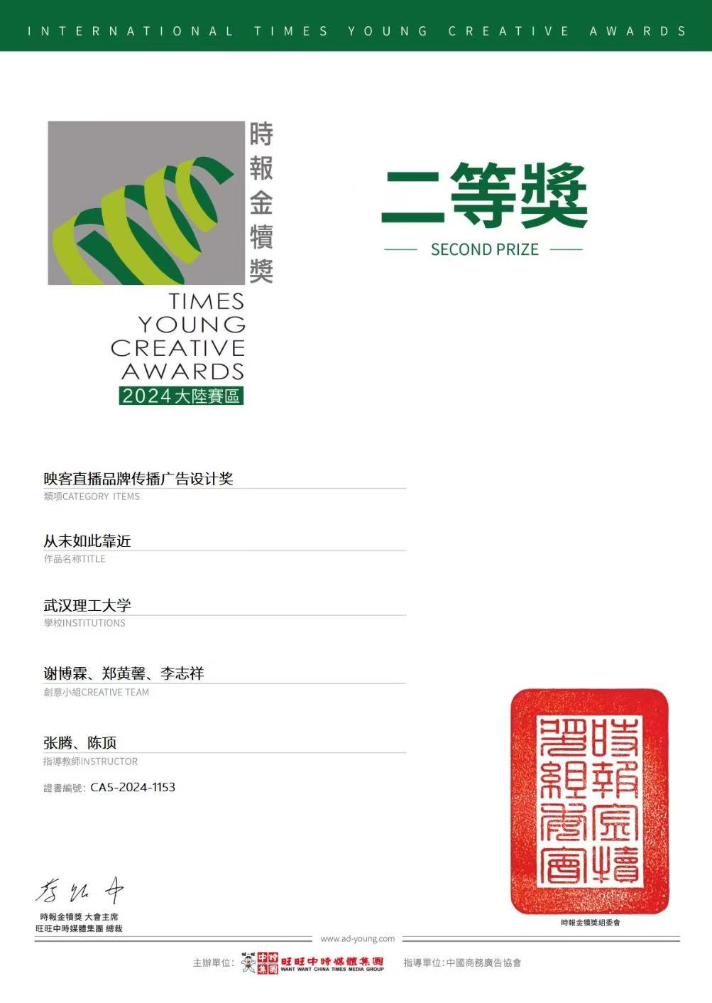 (“时报金犊奖”二等奖证书)
