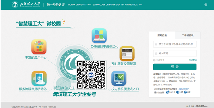 第一步、员工自愿报名,在规定截止报名日期前(见招生通知的项目列表)通过网页登录智慧理工大(网址:http://one.whut.edu.cn. )或者通过微信扫码登录电脑客户端。